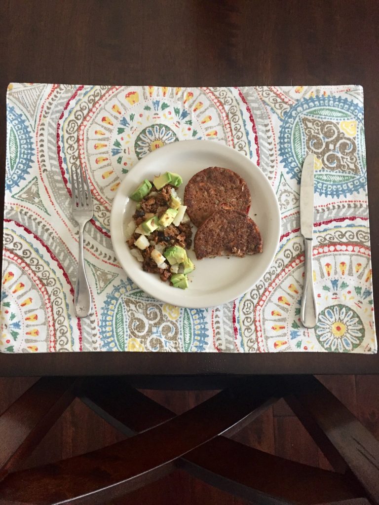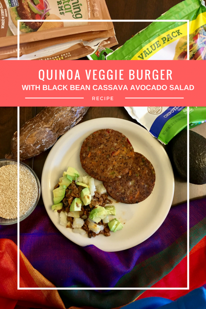 Quinoa Veggie Burger with Black Bean Cassava Avocado Salad