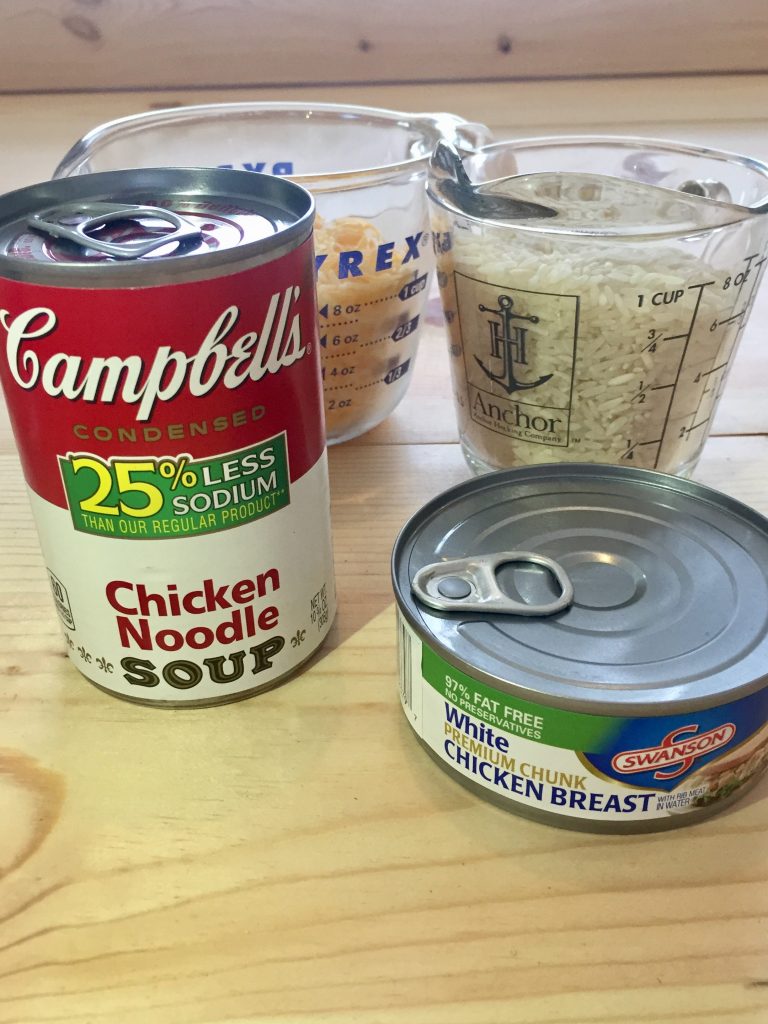 - 2 cans of Campbell’s® Condensed Chicken Noodle Soup