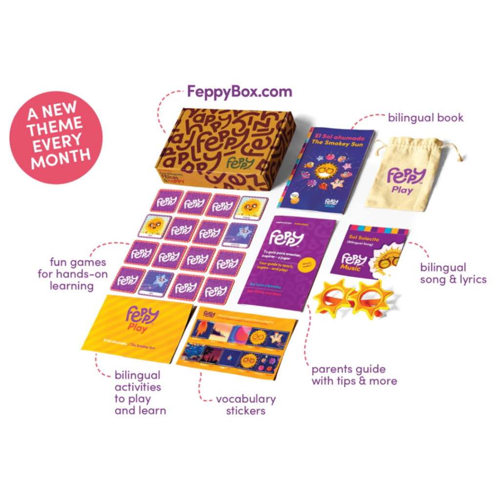 Feppy is a bilingual subscription box that includes bilingual books, authentic music and play-based activities.